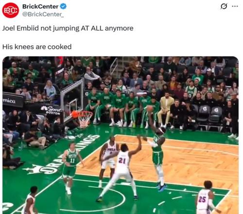 美媒《BrickCenter》的评价则更加直接与尖锐,他们晒出恩比德在比赛中的部分片段,一针见血的指出:“恩比德再也跳不动了,他的膝盖已经废了。”