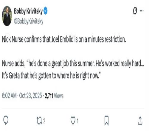 年赚6500万,复出首秀9中1!恩比德迷惑操作被嘲美媒:膝盖废掉了